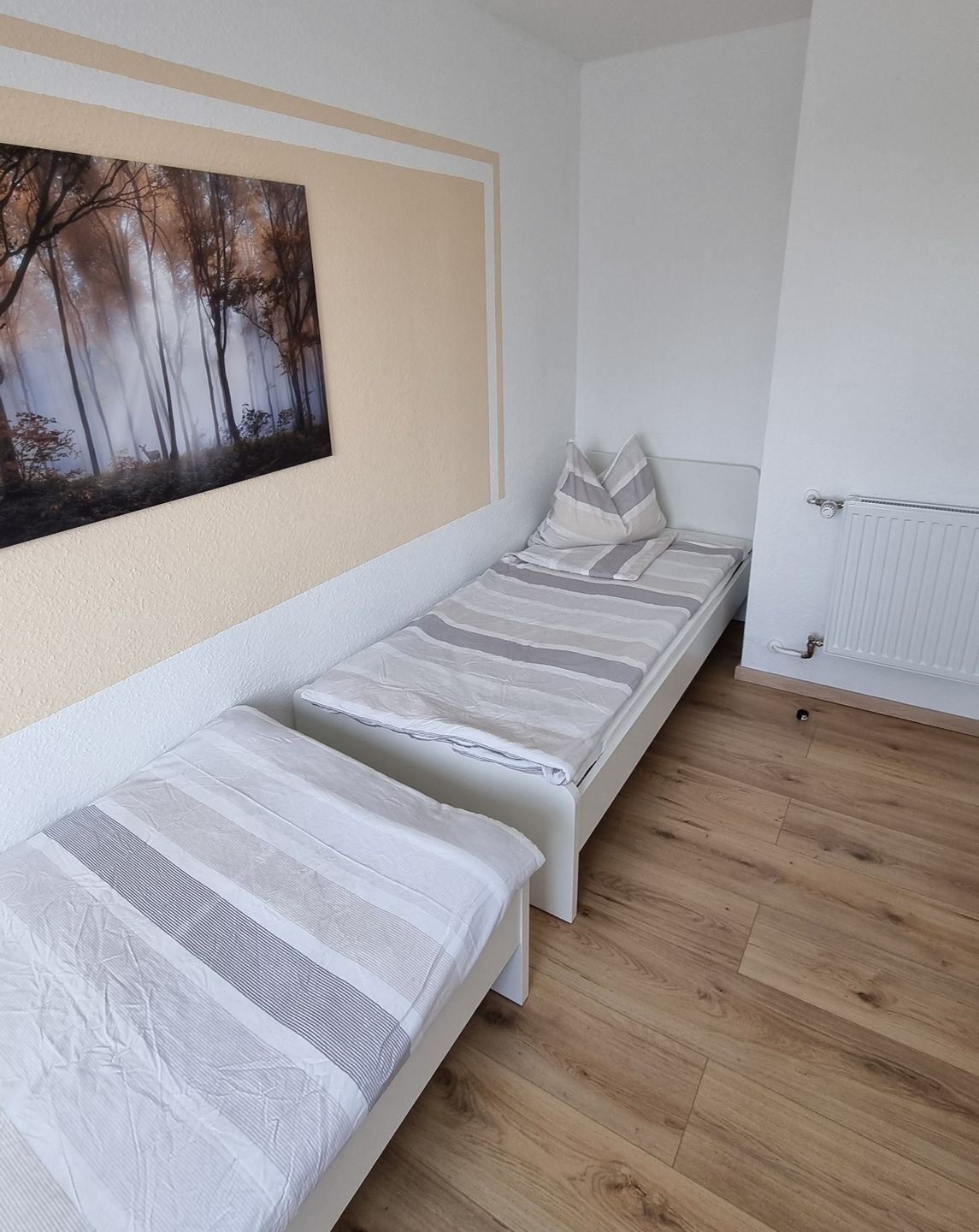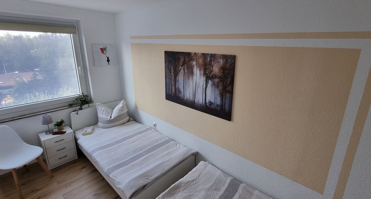 Die Ferienwohnung " Waldblick 512" verfügt über zwei Schlafzimmer. In einem Schlafzimmer befindet sich ein Doppelbett 1,60 m x 2,00 m mit einer durchgehenden Matratze und im zweiten Schlafzimmer zwei Einzelbetten, jeweils 0,90 m x 2,00 m.